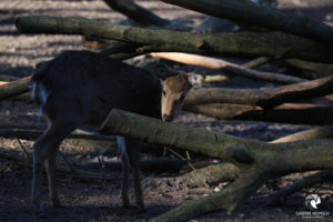 Dybowskihirsch im Wildpark Lüneburger Heide bei Hanstedt-Nindorf, fotografiert im Februar 2019.